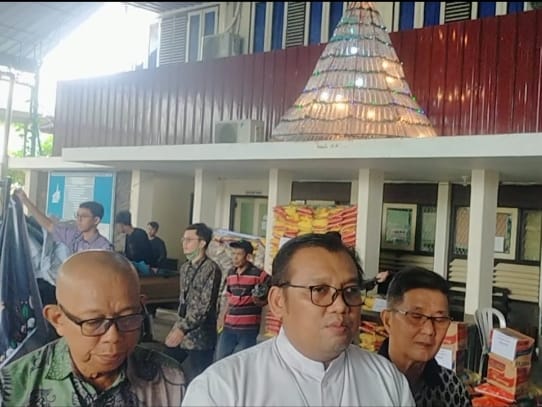 PALEMBANG,KITAKATOLIK.COM–Menjelang Natal 2023 beberapa gereja mempersiapkan hiasan natal berupa pohon natal dan palungan kandang/gua natal tempat kelahiran Yesus. Jika beberapa gereja membuat pohon natal dari pohon cemara atau barang-barang mewah, gereja Santo Yoseph yang terletak di Jalan Jendral Sudirman Palembang membuat pohon natal dari rangkaian botol-botol bekas.