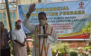 LARANTUKA,KITAKATOLIK.COM—Caritas Indonesia bersama  Caritas Larantuka memulai program Perbaikan Rumah (Retrofitting) pasca Erupsi Gunung Lewotobi Laki-Laki dengan upacara adat Loi Glete bertempat di Desa Boru, Kecamatan Wulanggitang, Kabupaten Flores Timur (Flotim), NTT, 26 Februari 2025. Pada Program Retrofitting ini, Caritas akan membantu perbaikan rumah untuk 220 keluarga di empat dusun dalam wilayah Keuskupan Larantuka.