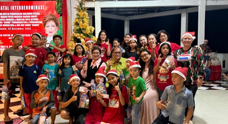 Senator RI asal Sulawesi Utara, DR. Maya Rumantir, MA., Ph.D, menggelar Ibadah Natal Interdenominasi yang tak sekadar menjadi seremoni tahunan. Bersama staf kantor DPD RI Perwakilan Sulut, Laskar Merah Putih (LMP) Markas Daerah Sulut, Kelompok Doa SABDA, hingga puluhan anak panti asuhan dan kaum janda, sebuah pesan “menggigit” dilepaskan: bahwa keselamatan bangsa dimulai dari meja makan dan ruang tamu keluarga. Keluarga yang bersinar! Keluarga yang bersaksi benar!