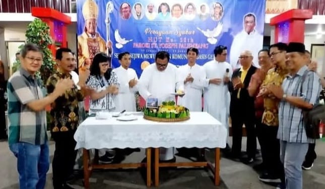PALEMBANG,KITAKATOLIK.COM—UMAT Paroki Santo Yoseph, Keuskupan Agung Palembang merayakan HUT ke 58 dengan Perayaan Ekaristi yang digelar pada Rabu (15/1/2025). Mengangkat tema “Sehati Sejiwa dalam Membangun Komunitas Basis”, Perayaan Ekaristi di gereja yang berlokasi di Jalan Jenderal Sudirman, Kota Palembang ini dipimpin oleh pastor Paroki Santo Yoseph, RD. Hyginus Gono Pratowo didampingi pastor rekan RD. Stefanus Surawan, RD. Yohanes Agung Apriyanto dan RD. Dionisius Anton Liberto.