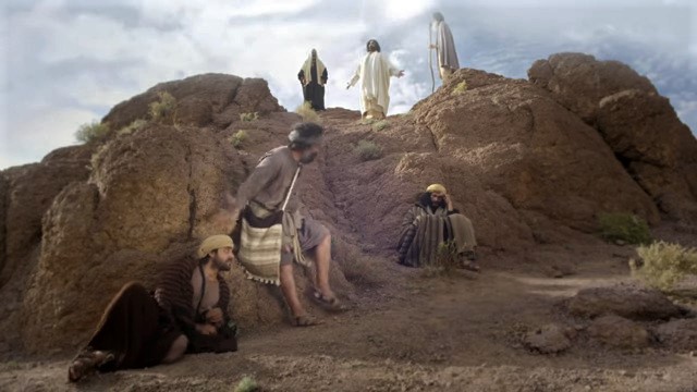 Sekali peristiwa, Yesus membawa Petrus Yohanes dan Yakobus, lalu naik ke atas gunung untuk berdoa. Ketika Ia sedang berdoa, rupa wajah-Nya berubah dan pakaian-Nya menjadi putih berkilau-kilauan. Dan tampaklah dua orang berbicara dengan Dia, yaitu Musa dan Elia. Keduanya menampakkan diri dalam kemuliaan dan berbicara tentang tujuan kepergian-Nya yang akan digenapi-Nya di Yerusalem.