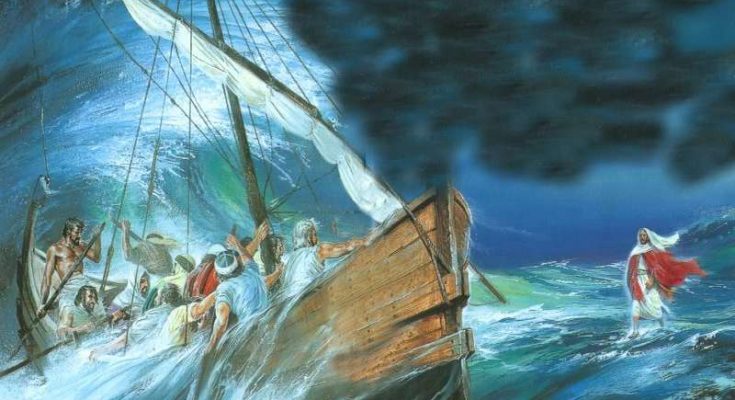 Sesudah mereka mendayung kira-kira dua tiga mil jauhnya, mereka melihat Yesus berjalan di atas air mendekati perahu itu. Maka ketakutanlah mereka. Tetapi Ia berkata kepada mereka: “Aku ini, jangan takut!” Mereka mau menaikkan Dia ke dalam perahu, dan seketika juga perahu itu sampai ke pantai yang mereka tujui. (Yohanes 6: 16-21).
